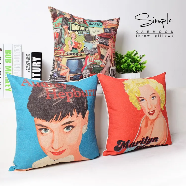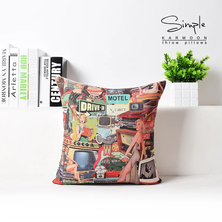 Decorative Vintage Lumbar Pillows:Art Painting Pillows Cover