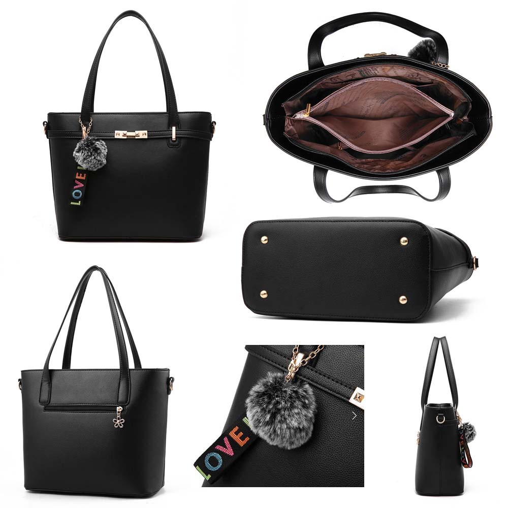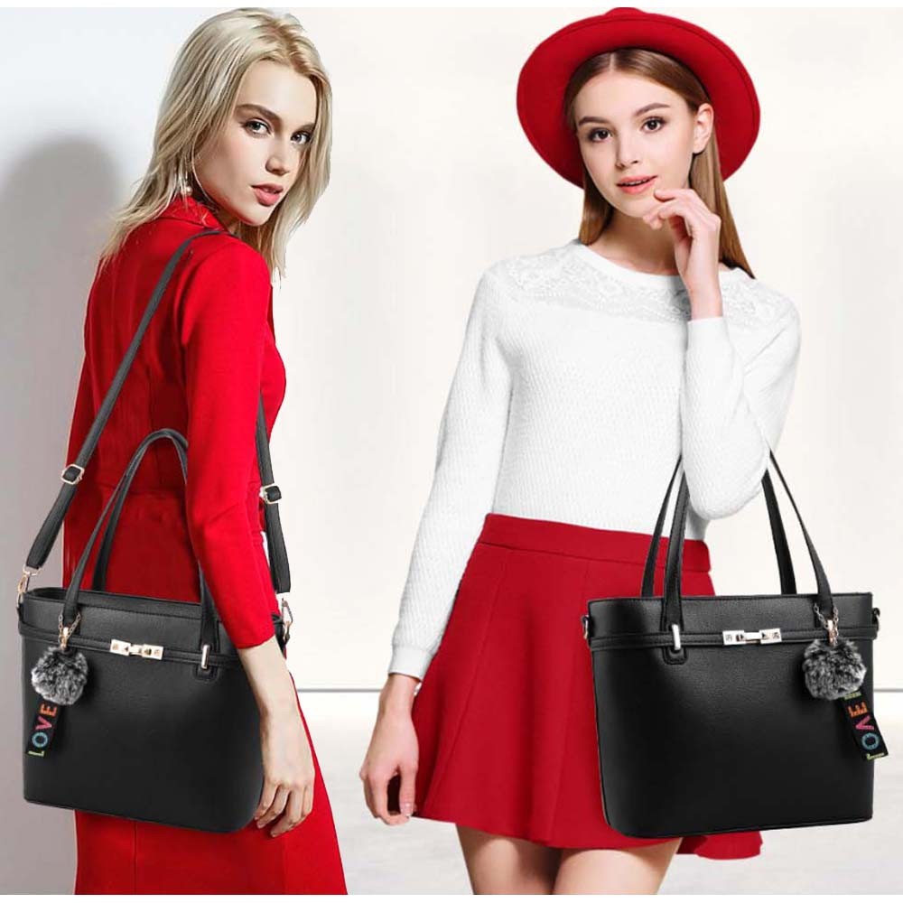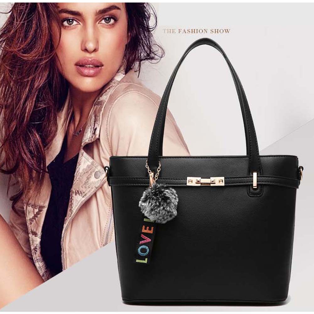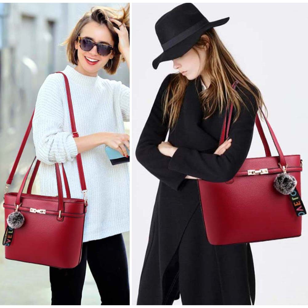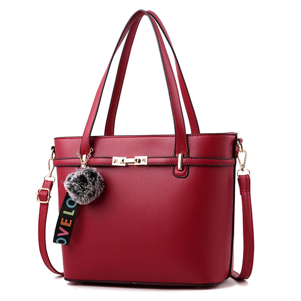 しっかりしたフェイクレザー素材のショルダー付きトートバッグ