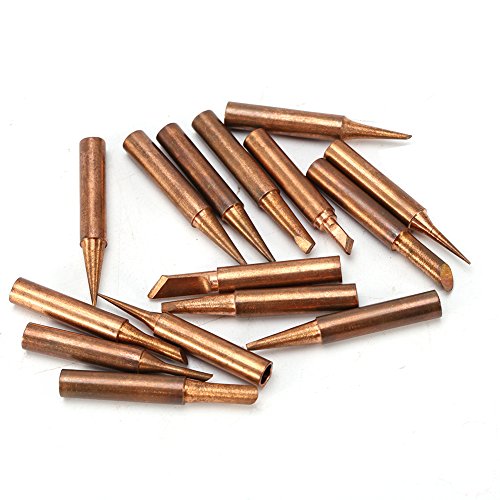 900M-T Series Pure Copper Lead-free Replaceable Solder Iron Tips Set Low Temperature Soldering Station Tool Shape K, B, I, SI, SK, 1C, 2C, 3C, 4C, 5C, 0.8D, 1.2D, 1.6D, 2.4D, 3.2D (15 pcs)