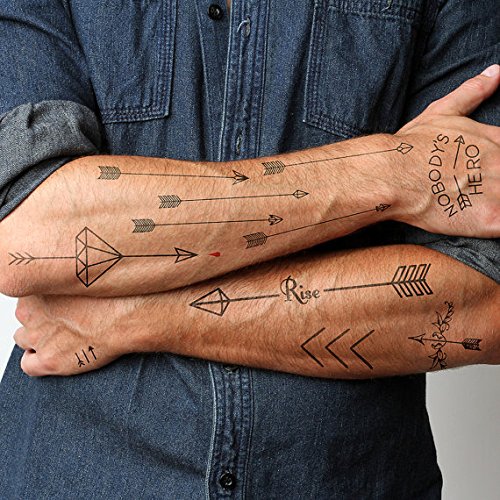 Tattify Arrow Themed Temporary Tattoos - Get Poked (Complete Set of 14 Tattoos - 2 of each Style) - Individual Styles Available and Fashionable Temporary Tattoos