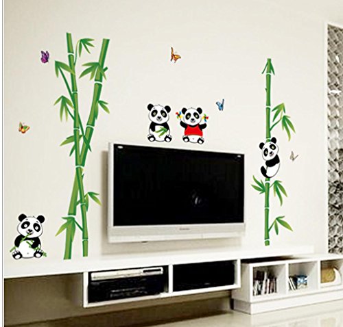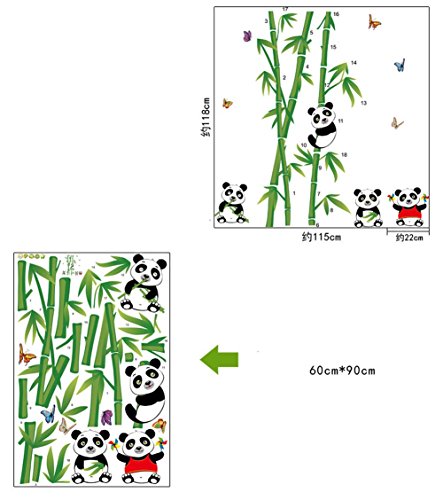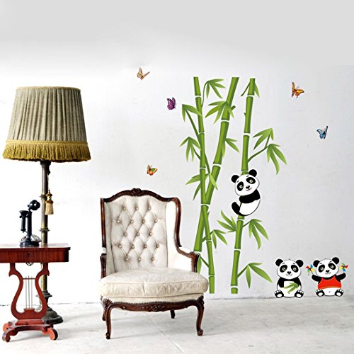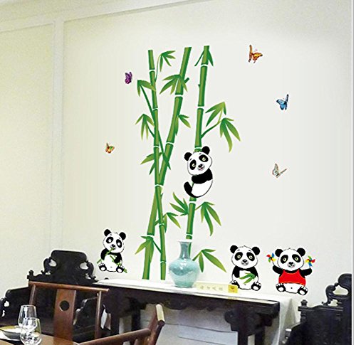 -. Title : BIBITIME 4 Panda Wall Decals for Kids Rooms Green Bamboo Vinyl Stickers Nursery Room Butterflies Decor