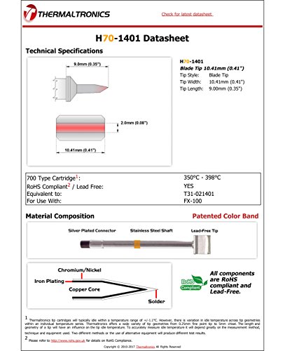 Thermaltronics H70-1401 Blade Tip 10.41mm (0.41") interchangeable for Hakko T31-021401