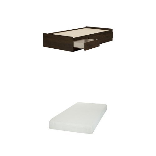 (South Shore)/Kids' Furniture Room Decor/Bed Frames, Headboards Footboards/DIRECT FROM USA/South Shore Fynn Twin Mates Bed (39') with 3 Drawers, Brown Oak, and Somea Twin Mattress included