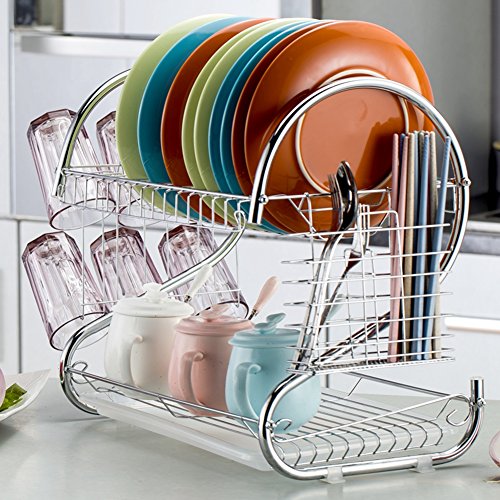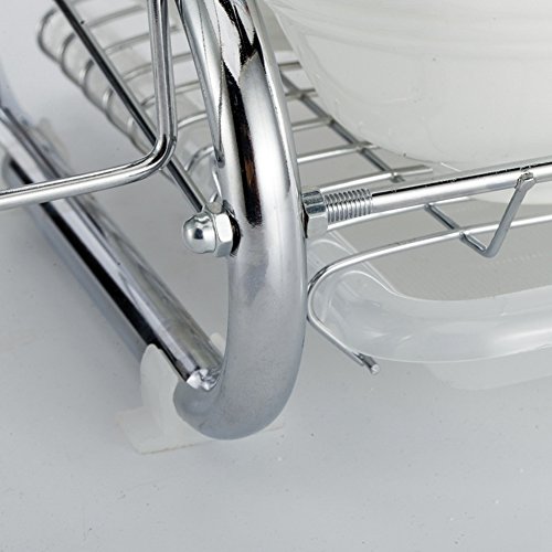 Double-deck Dish Rack and Drainboard Set, Stainless Steel Dish Drying Rack (Dish Rack+Chopsticks cage+cup holder, white)