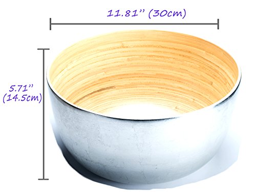 Bamboo Salad Bowl Pasta Bowl Large 11.81" X 5.71" 100% Bamboo Wood Bowl Silver Eco Frienldy Color