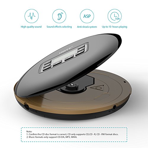 The CD is designed to read CD, CD-R, CD-RW Discs. Support playing formats: CD-DA, MP3, and WMA. The slim portable compact CD player is a simple, yet functional solution for your portable audio needs. With volume control and a stereo headphone jack(one set of stereo earbuds are included), it is perfect for taking to the beach, study hall, home or work.