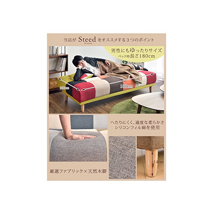 fabric와 목다리가 상냥한 인상의 소파 베드 *스티드*소파 베드 중(안)에서도 있는 것 같아 없었던 패치워크무늬를,당점 디자이너가 셀렉트 한 오리지날 배색에 신제안!제대로 언약의 잘 때의 기분은 마음껏 허물없이 지내고 싶은 장소 만들기에는 물론,내손님용 베드로서의 사용으로도 최적입니다.목다리를 다른 것 하면 방을 널리 보이는 로우 소파로도!인테리어나 씬 에 따라 용도,형태를 바뀌는 소파 베드입니다.