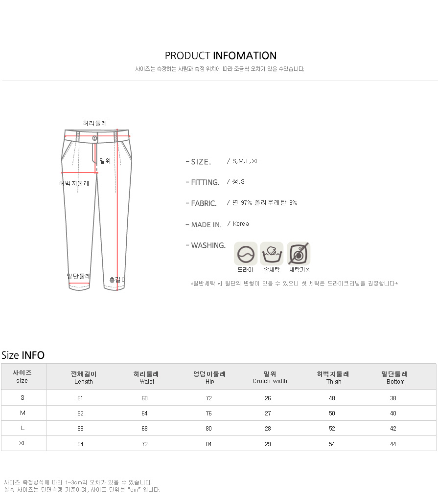 허리 밴딩처리와 신축성으로 입었을때 우수한 착용감을 자랑하구요.