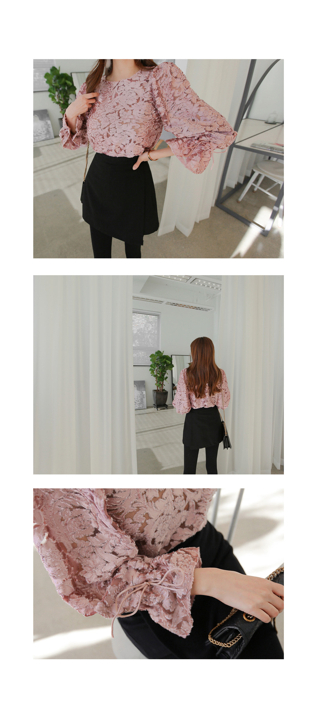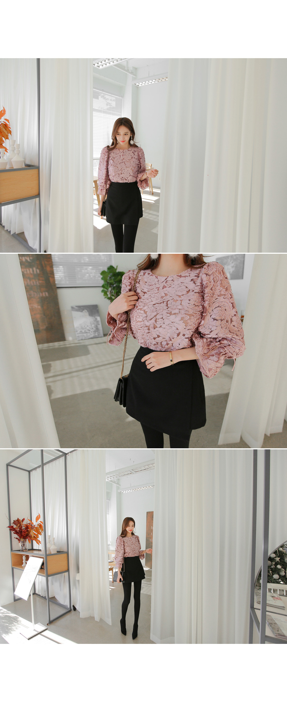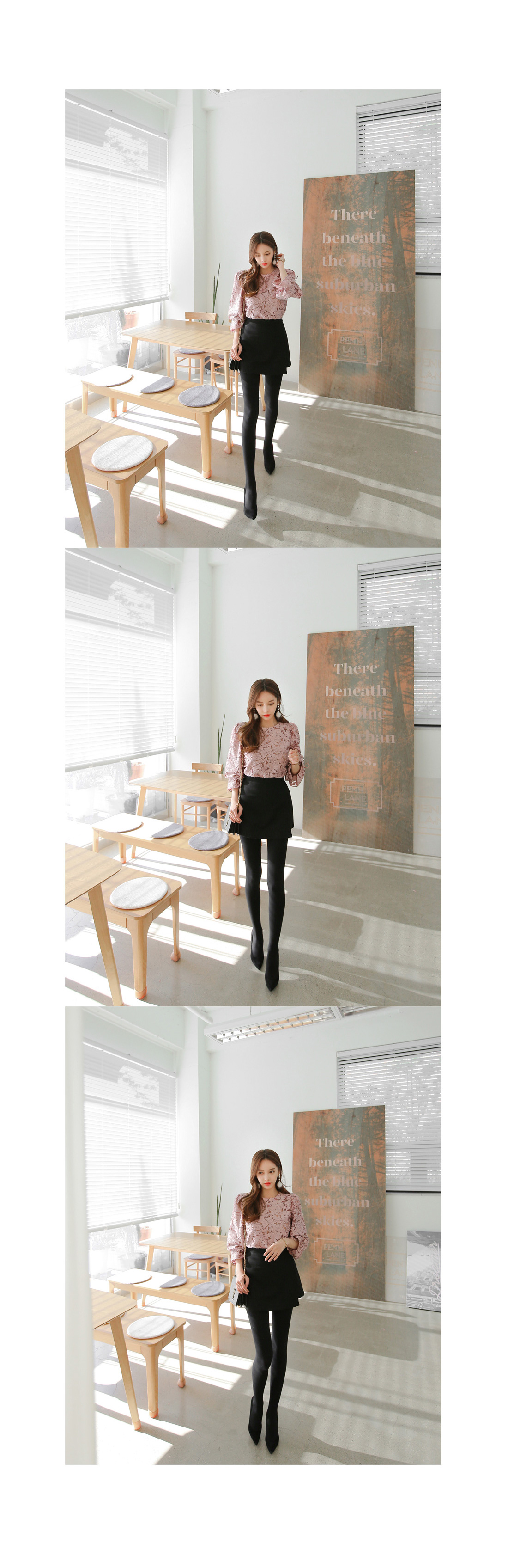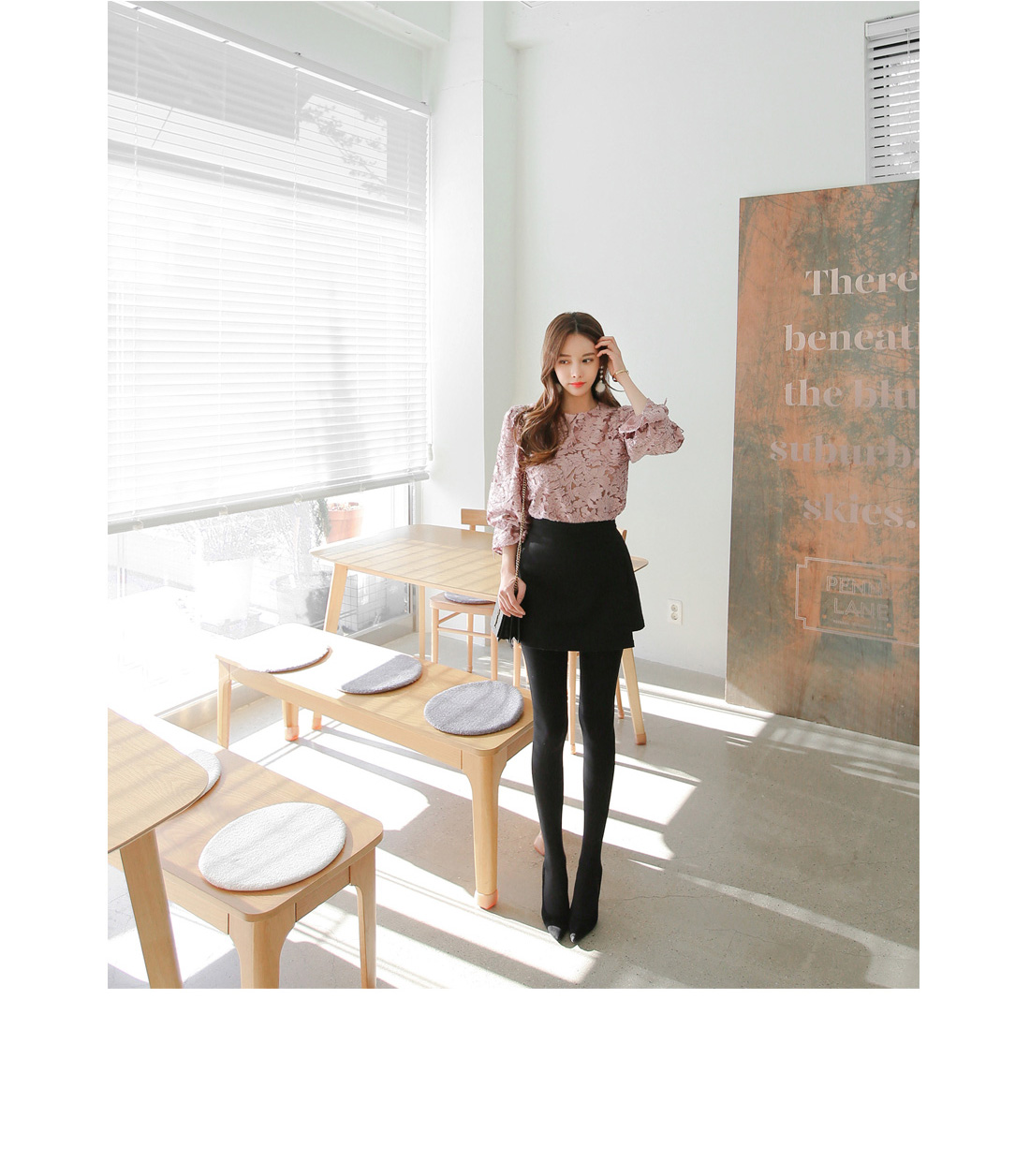 여성스러운 블라우스와 함께 매치하여 파티룩으로 연출해도 예쁘며