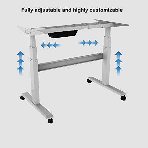 -. Feature : DUAL MOTOR LIFT - Dual electric motors provide high load bearing capacity, smooth and stable height adjustment, as well as quiet operation. Height adjustment of 25.6 inches min to 48.2 inches max. / PROGRAMMABLE TOUCH CONTROL - Advanced control panel with touchscreen has three customizable height presets. You can save your favorite seated and standing height. The desk height is shown on the display. Timer function alarms for helpful reminder for standing or sitting and can be turned on or off. / SOLID AND STABLE CONSTRUCTION - Larger four casters, All steel frame construction for maximum structural integrity. Crossbar and adjustable feet pads offer extra stability. 176 lbs maximum load capacity. / TABLE TOP SIZING - Select your favorite tablet top material and color and easily install on this standing desk frame. Recommended table top size range of 43 to 90 inch wide and 26 to 40 inch deep. The frame can expand and collapse in width depending on your space requirements and constraints.