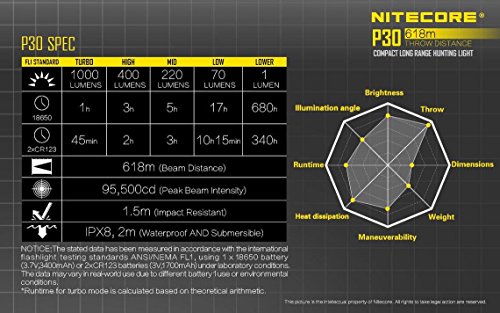 Bundle: Nitecore P30 1000Lm LED Flashlight + 2x Nitecore NL1835, D2 Charger, & 2x FREE Eco-Sensa CR123A Batteries