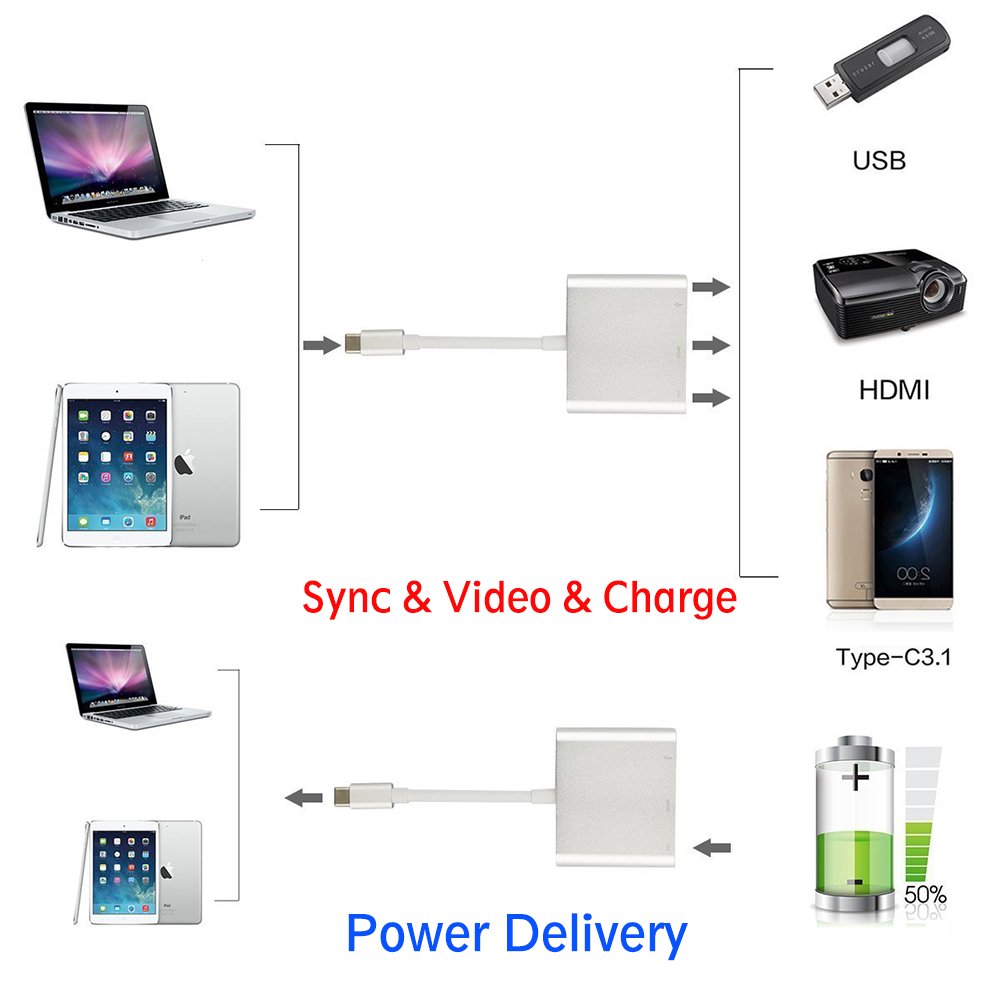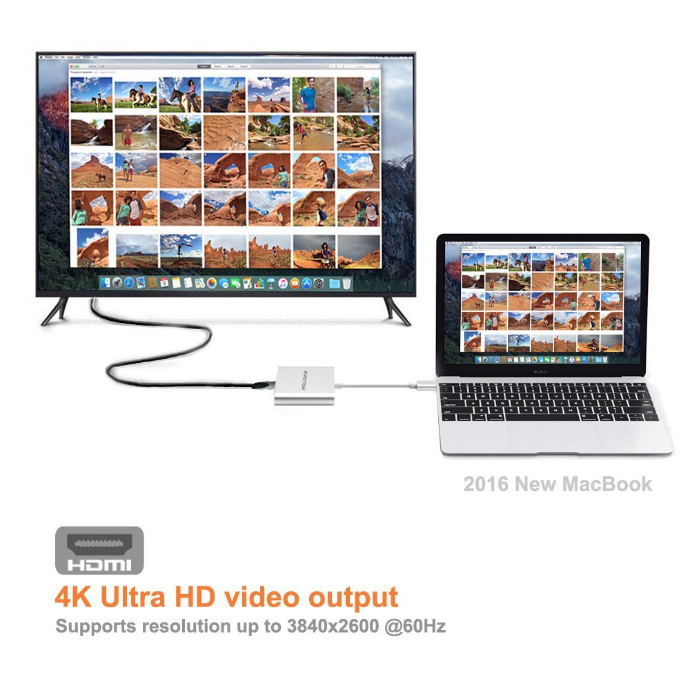 Simply connect the adapter to the USB - C port of the device or the Thunderbolt 3 (USB - C) port of the MacBook, simply connect it to the TV or projector with the HDMI cable (sold separately).