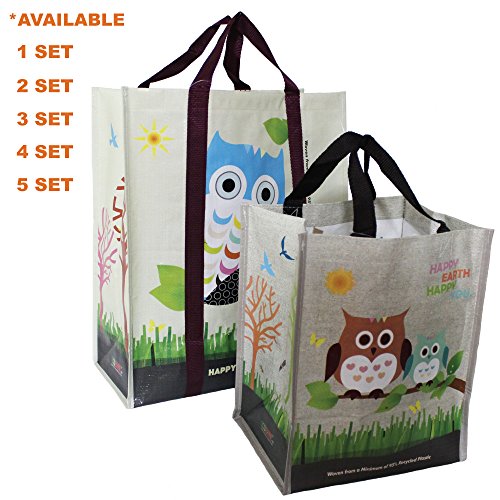 COMBO SET (1 XL + 1 Mini = 2 Pcs) EcoJeannie Super Strong Laminated Woven Reusable Shopping Tote Bags (Avail:1,2,3,4,5 Sets),Free Standing,Recycled Plastic/Bottom Board&Reinforced Nylon Handle, WC0001