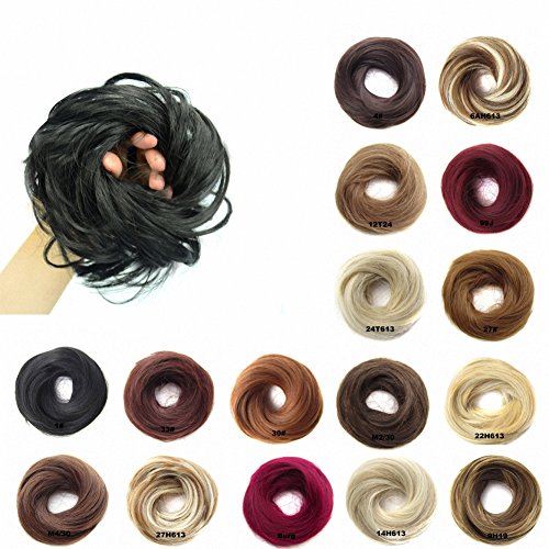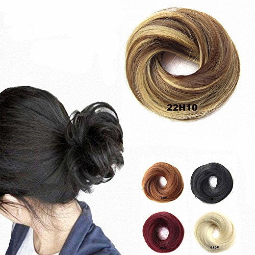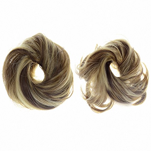 FESHFEN Scrunchy Scrunchie Hairpieces Elastic Messy Hair Bun Ponytail Hair Extensions Wig Drawstring-22H10 Ash Blonde & Medium Golden Brown