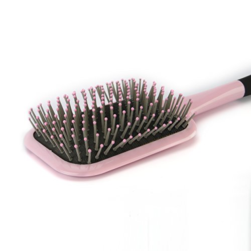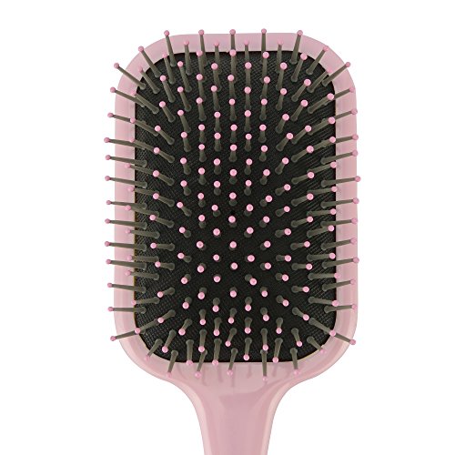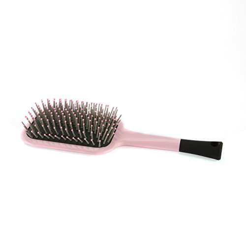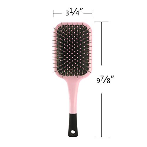 -. Feature : Detangles, softens, improves manageability; recommended for all hair types/textures / Cushioned pad absorbs shock & subdues static charge to smooth, polish & de-frizz / Rubberized bristle tips soothingly stimulate & massage the scalp to speed up growth / Combines the durability of plastic with the naturalistic style of a pink grain P.R.Int / Large 9 3/4" x 3 3/8" x 1 1/2" size for faster blow drying, detangling, brushing