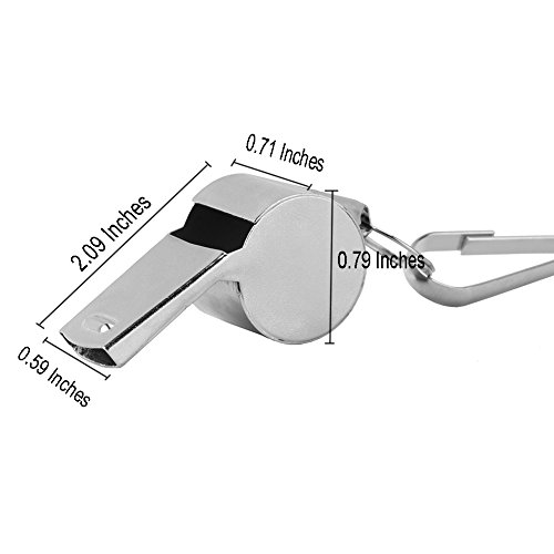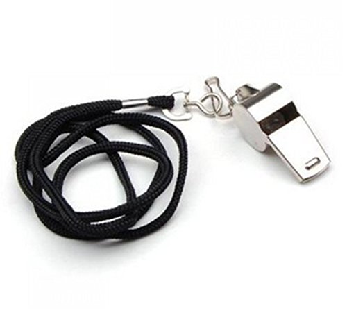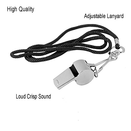 Stainless steel whistles with black adjustable lanyard, features a bold, crisp clear sound. Great party favor or giveaway, idea for sporting events, training, lifeguard, referee, coaches,self-defense, survival, emergency and as personal alarms etc. 0