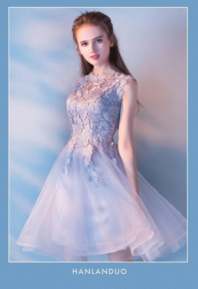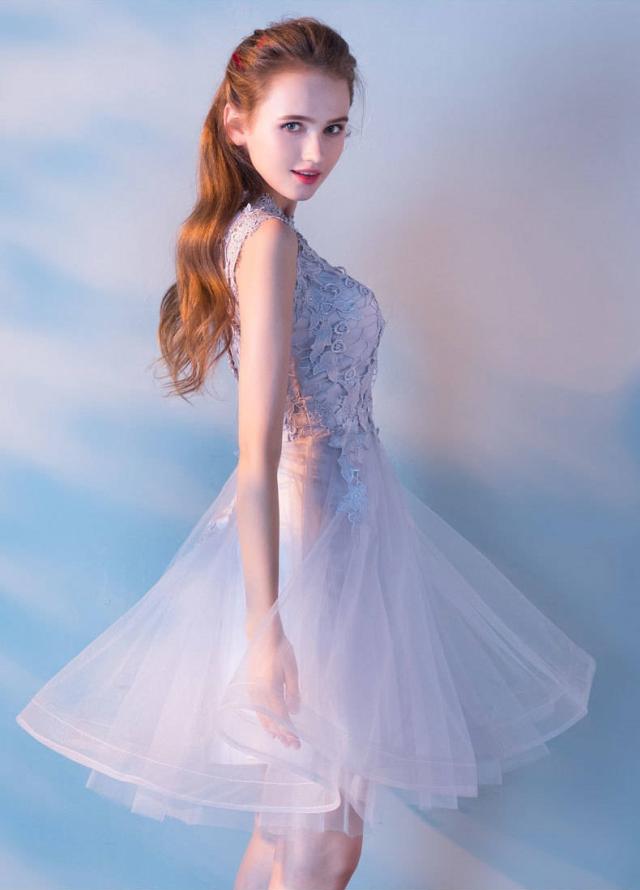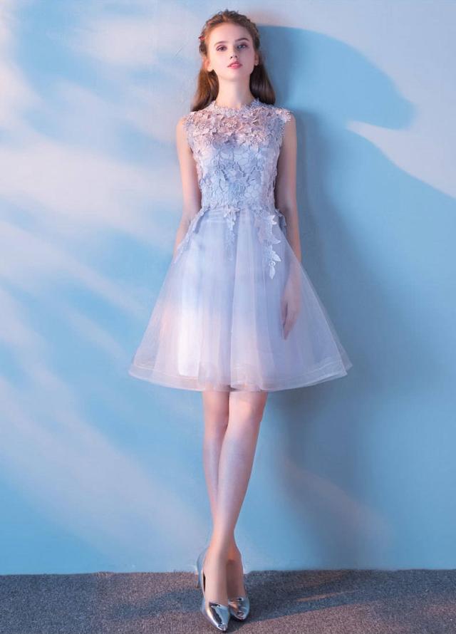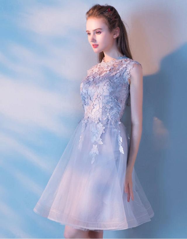 パーティードレス 結婚式 ウンドネック シルバーグレー 二次会 謝恩会 披露宴 卒業パーティー 成人式