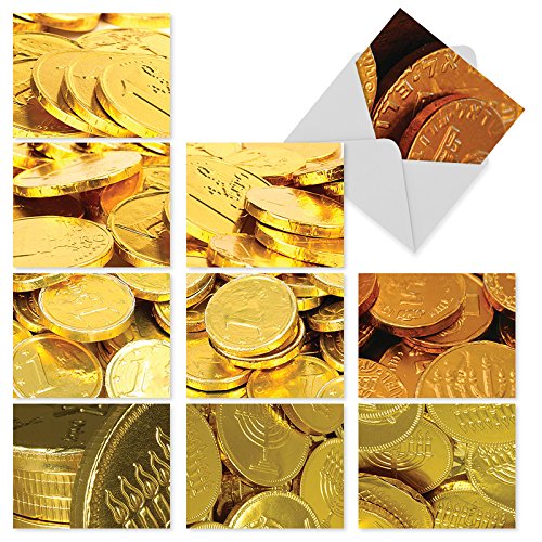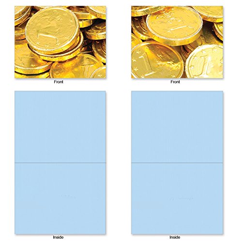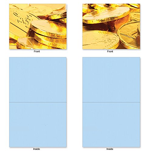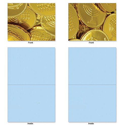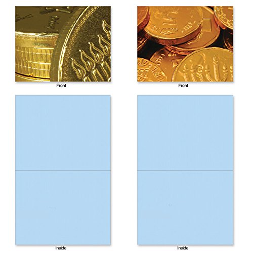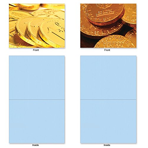 Here's the perfect way to send a little Gelt to someone for Hanukkah. Enclose a gift card or cash along with your holiday wishes in these Blank Note Cards featuring images of the traditional chocolate coins. These notecards look great framed, too! Try framing them individually, or grouping several in a collage frame, to create visually appealing wall decor.