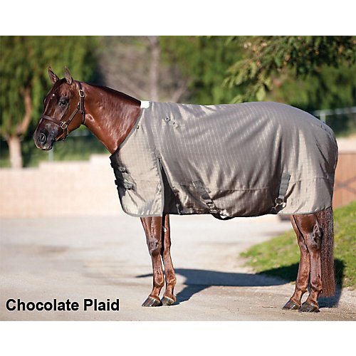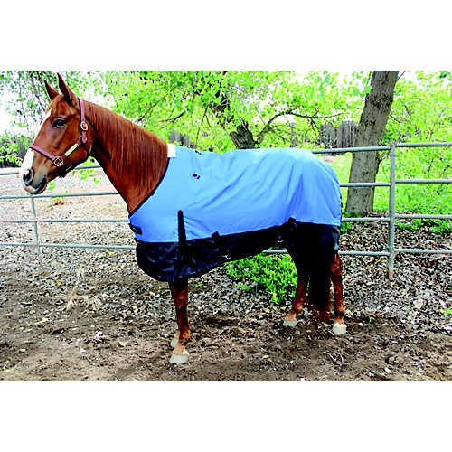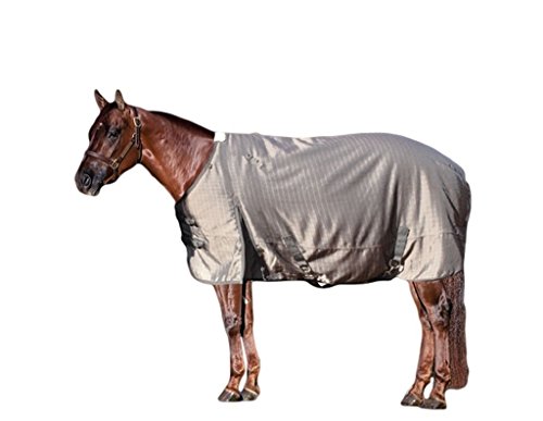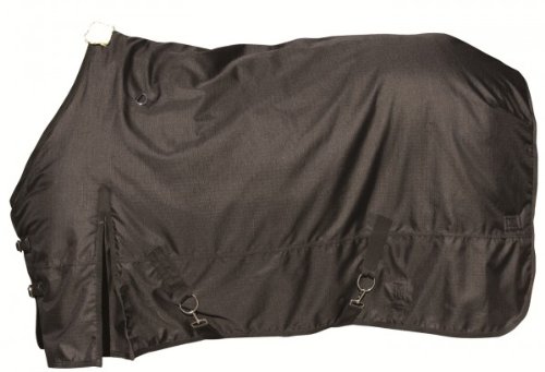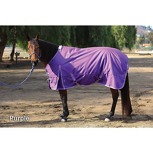 Studio : Professional's Choice Publisher : Professional's Choice Binding : Misc. Product Description Professionals Choice 1200D Turnout Blanket This turnout blanket is ideal for seriously wet and cold weather, it is waterproof and breathable. Made with a 1200 Denier rip-stop outer shell, a nylon lining and 300g Hollofil(R) insulation, it is sure to keep your horse warm and dry! Features: Reinforced, taped seams Protective tail flap keeps the wind and cold out Fully adjustable double-buckle front closure Removable elastic leg straps Fleece at the withers to prevent mane rub out Available in 2" increments Specifications: Measuring Instructions - Stand your horse as square as possible, measure from the center of chest around side of the body to the point of the horse's rump just before the tail. If you horse ends up measuring between sizes always round up to the next size to ensure full coverage. Washing Instructions - Machine wash with cold water - Gentle cycle with mild detergent. Air Dry or Machine Dry/No Heat Horses Turned Outside without Shelter - Turnout Sheet and Blanket materials are waterproof and designed to keep your horse dry, however if your horse is turned out in a field without a run in shed or shelter during prolonged rain or heavy downpours your horse may still get wet especially in the neck and tail areas. When using a blanket or sheet it is critical to monitor the fluctuating climate and temperatures even with a blanket that is waterproof and breathable. The wicking properties of a breathable blanket are designed to wick away normal body heat, when a blanket is too heavy the heat and moisture cannot be wicked away fast enough causing your horse to sweat. The temperature and the length of your horse's coat will determine what weight of blanket you should use. For this reason, most people who choose to blanket horses have several articles of horse clothing that offer varying levels of warmth. When selecting a blanket ensure to take into account your horse's behavior, environment or other horses that may be turned out with your horse. The lower the den 0