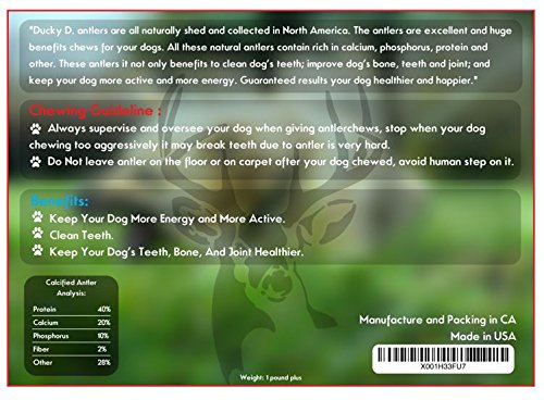► Guaranteed Satisfaction, Premium Quality, Safety and Excellent Alternative Treating time will take on a whole new meaning with the Ducky D. Antler dog sews. Dog Owners love Ducky D. Antler! In a timeless we select the best natural antler from the nature in North America; we sanitized all antlers and ensure all edge is smoothen. Your dog will love, and enjoy this treat.