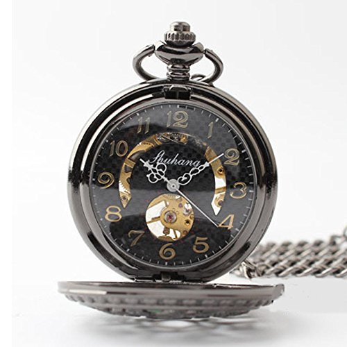 -. Title : TODDCAHALAN Vintage Antiqued Stainless Steel Case Skeleton Mechanical Pocket Watch with Chain F084