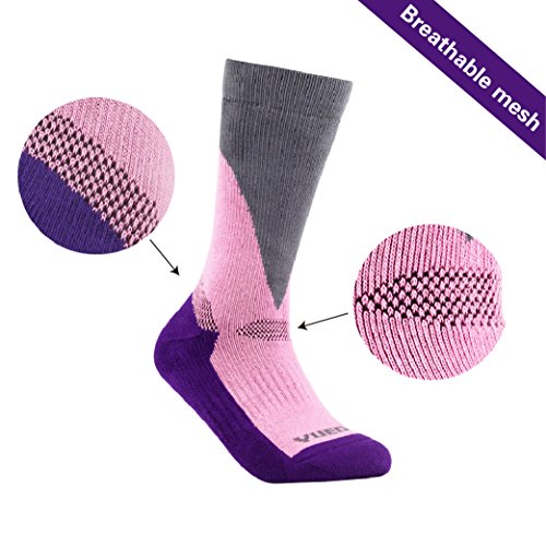 -. Feature : COMFORTABLE SUPPORT - YUEDGE Medium Hiking Socks are reinforced with high-density fibers. The piled cushioning in the sole is for added comfort during hiking, walking or any other outdoor activity. / EXCELLENT MOISTURE MANAGEMENT- Walk all day long and NO NEED TO worry about moisture or blisters due to our exclusive wicking dry moisture management. The venting panels can remove moisture, which keeps your feet dry. / ANTI-BLISTERS - Highly-cushioned instep can reduce lace and tongue pressure. The toe seam is pretty smooth and comfortable. Our socks can effectively protect your feet from painful blisters. / DOUBLE HEIGHTENING WITH HAND DESIGN - Easy to put on, comfortable with no sense of restraint. No tensile deformation; no loose condition. / MULTI PERFORMANCE - These Trekking Walking Socks are breathable, absorbent and deodorizing! Ideal for outdoor sports, camping, hiking, climbing, trekking, outdoor trail, running, walking, etc.