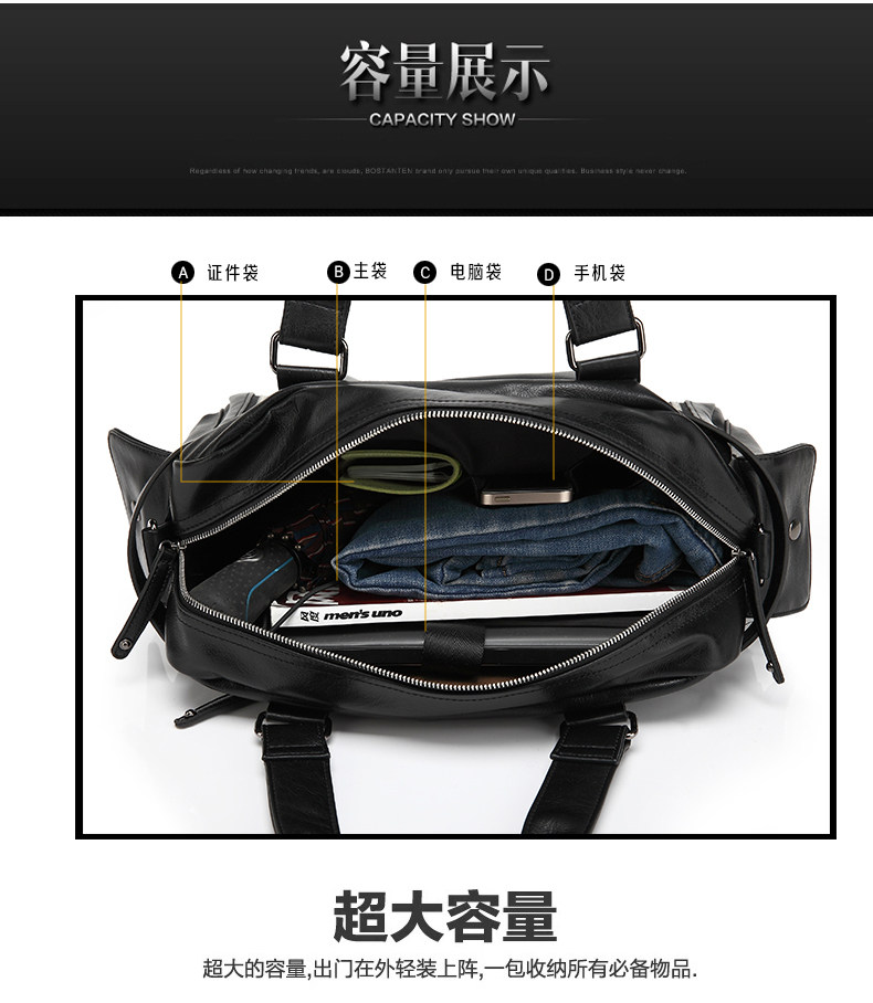 Internal Structure: zipper pocket cell phone pocket sandwich zipper bag document bag pocket computer
