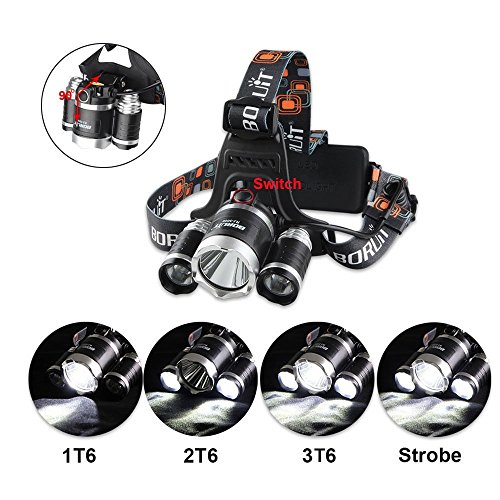 Rainproof Water Resistent Headlamps CREE XML 3xT6 Rechargeable LED Headlight Headlamp Head Lamp Ligh For Bicycle Camping Hiking Hunting Fishing Caving Emergency Use (Headlamp+Battery+Charger)