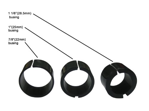 Handlebar mount kit fits all standard round-tube handlebar sizes (7/8 in., 1 in., 1 1/8 in. and 1 1/4 in.), requiring only 3/4 in. of handlebar