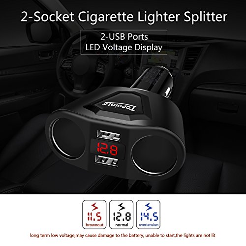 Dual USB Ports Dual Socket Cigarette Lighter Splitter Design: 2-USB ports and 2 cigarette lighter socket splitters let you charge more than 2 devices simultaneously.