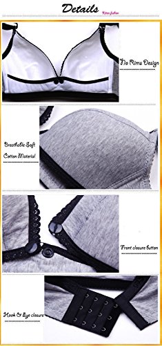 This Wrieless nursing bra is a must-have comfort for all mommies. Designed specifically for maternity needs, its body hugging fabric gently stretches to accommodate your changing shapes. This bra is soft, fully adjustable and wire-free for added comfort. Full drop away bra cup is important for skin-to-skin contact and the easiest possible breastfeeding access for mom and baby. A good choice for a night sleeping or lounging when comfort is key. Nursing your baby is easy, convenient and comfortable in this lightly padded, wire-free,front button nursing bra from Kitten fashion! Product Specifications: Front Button easy one-hand release for nursing Unique gentle support Wireless comfort and support Full drop away bra cup for skin-to-skin contact 4 Back hooks & eyes and adjustable straps Full coverage with center shirring deep Soft-V-neck Soft stretchy fabric: Cotton/spandex Hand wash,line dry Please check the size details to make your right purchase decision. Size S fits for 32D 34A 34B 34C Size M fits for 34D 36A 36B 36C Size L fits for 36D 38A 38B 38C Size XL fits for 38D 40A 40B 40C Service: Our goal is to keep our customers beyond satisfied. If this was not the case,we would appreciate it if you could give us a chance to address your concerns before feedback.We promise provide a satisfied solution.Feature