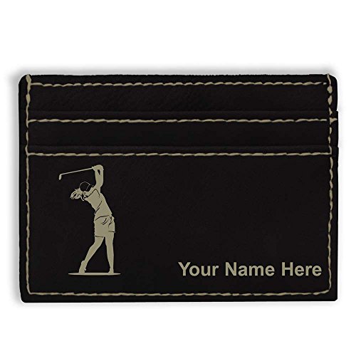 -. Binding : Apparel -. Brand : SkunkWerkz -. ClothingSize : Medium -. Color : Black -. Department : mens -. EAN : 0655222571304 -. Feature : The Money Clip Wallet is laser engraved with the image that you see in the photo. / Your name or personalized message will be engraved on the wallet for free. / Synthetic leather construction. Includes space for 3 credit cards. / You may have one line of engraved text - 20 characters maximum. / Click the "Customize Now" button to begin customizing your wallet. -. ProductGroup : Apparel -. ProductTypeName : ACCESSORY -. Size : Medium -. Title : Money Clip Wallet, Golfer Woman, Personalized Engraving Included (Black) -. UPC : 655222571304