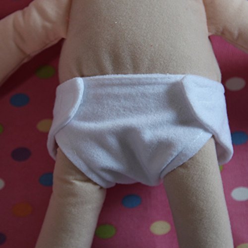 Do you have a little girl who just loves playing mommy? These adorable baby doll diapers are the perfect addition to your little ones baby accessory collection! This cute pack includes 6 white diapers to keep hungry little dolls always clean and fresh. Little mom will have all the supplies she needs to change and care for her doll on the go! Around the waist: 10 inches, Around the leg: 5.5 inches, from waist to leg whole: 3.5 inches. 100% Polyester. Spot clean. Imported. DOLL NOT INCLUDED.