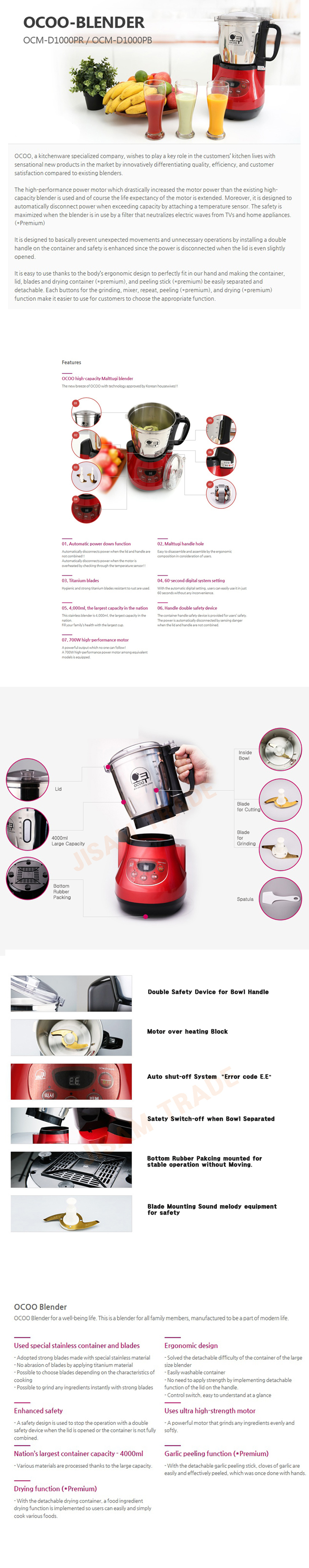 OC00 Blender with Large Capacity statinless blade Mixer Chopper Crusher OCM-D1OOOPR 22OV