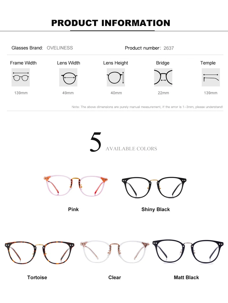 Colors:Black , Tortoise , Pink , clear