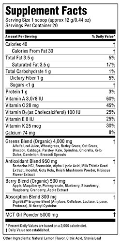 -. Title : Green Superfood Powder w MCT Oil - Super Micro Greens Daily Supplement w Wheat Grass - Amazing for Ketosis and Ketogenic Athletic Diets | by Perfect Keto