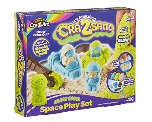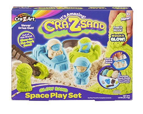 Includes Alien, Spaceman Space Ship Molds, Play Tray and 3 Colors of Glow in the Dark Sand