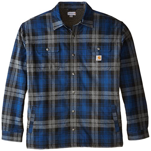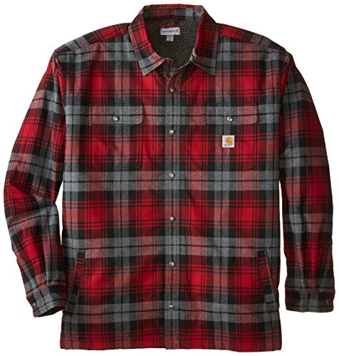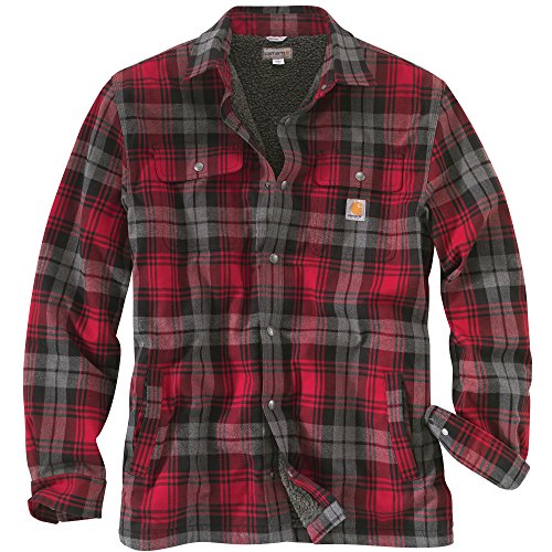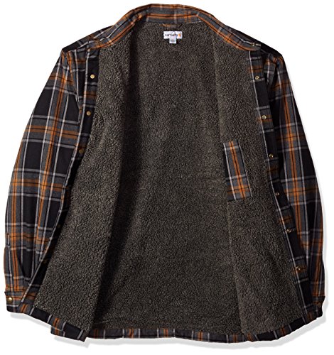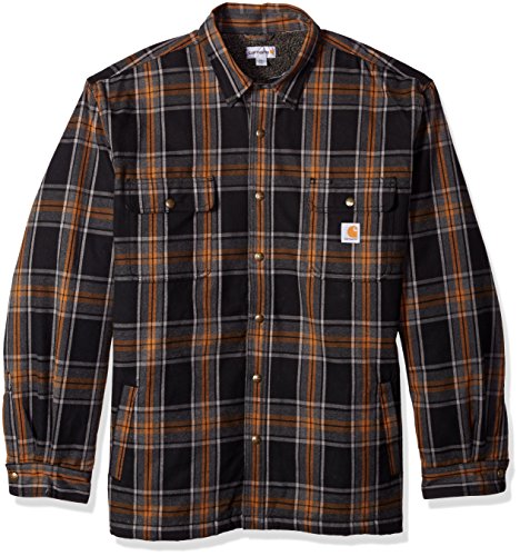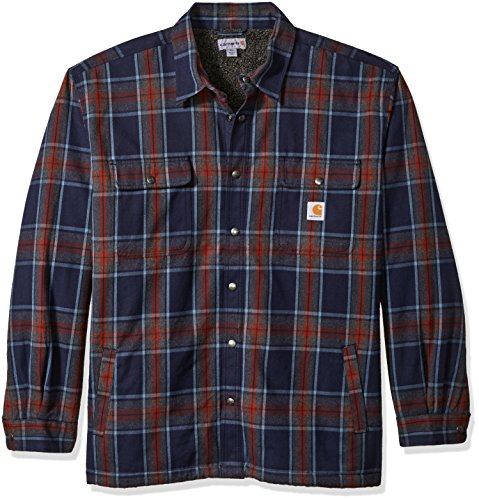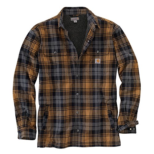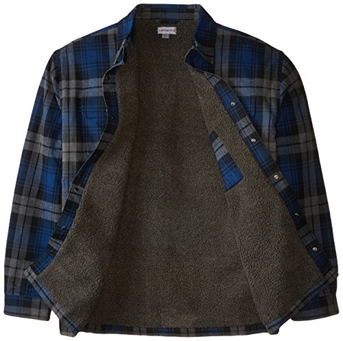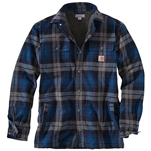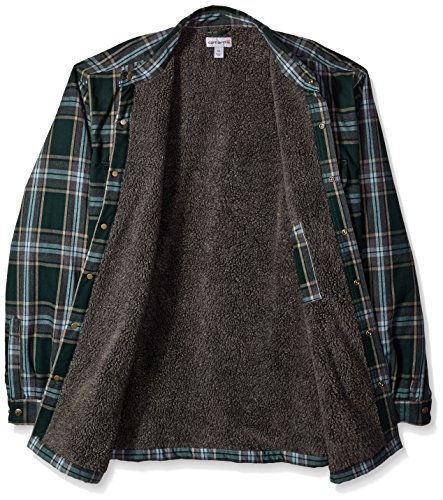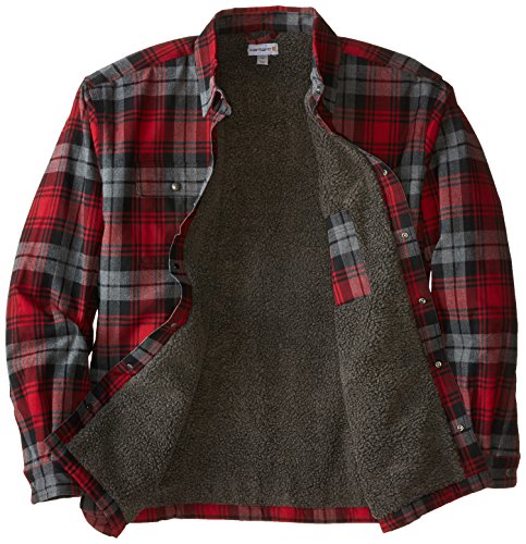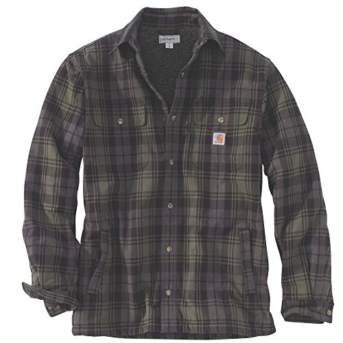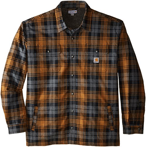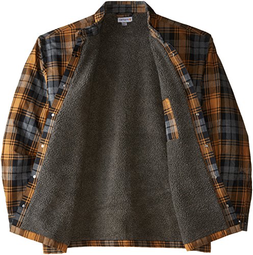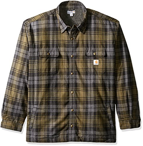 Studio : Carhartt Sportswear - Mens Publisher : Carhartt Sportswear - Mens Binding : Apparel Product Description Stay warm in the Hubbard sherpa lined shirt JAC, built to keep you comfortable during hard work. Offering an original fit and made from 8.25-ounce, 100 percent cotton ring spun flannel, this jacket has a sherpa lining, antique nickel snaps throughout, spread collar, two chest pockets with flaps and snap closures, interior chest pocket, two button adjustable cuffs with extended plackets and has Carhartt strong triple-stitched main seams. 0