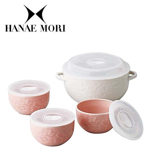 ハナエモリの象徴である蝶や花がレリーフで表現されたストッカーのセット。やさしい色合いの食器が食卓を彩ります。ご自宅用にはもちろん、ギフトにもオススメです。 |