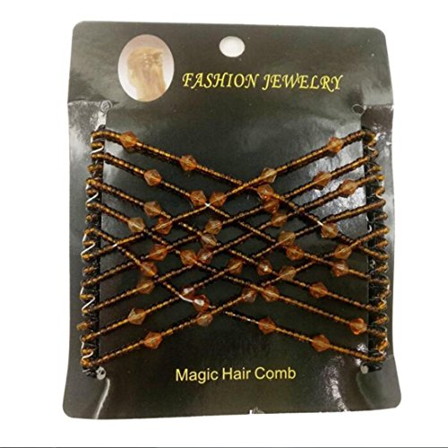 Ulike2 Easy Comb Ez Magic Comb Stretchy Beaded Hair Comb in Black Beads with Pearl (9#)