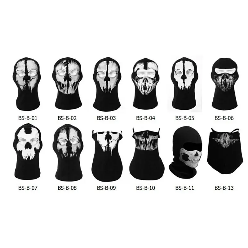 Material: Rib Fabric Item Name: Balaclava-face-mask Available 1: CS Mask for Military Fans Available 2: Cycling Mask Available 3: Anti Air Pollution Mask Available 4: Skiing, Snowboarding Available 5: Anti UV Rays Fabrics: Rib Fabric Pattern: Skeleton Silk Screen Printing Advantage: Good Breathability, Elastic Fabrics Ease for Sports Available
