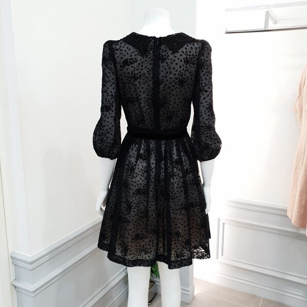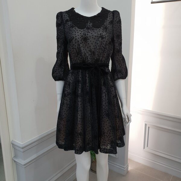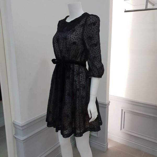 벨벳소재 리본끈으로 슬림하게잡아주는로맨틱한 이중레이스 원피스♡