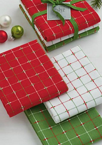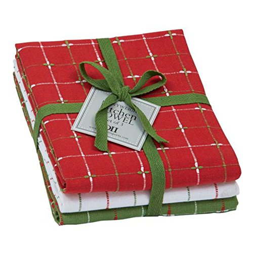 DII Holiday Christmas Dish Towel Set 3 Dobby Red, White, Green