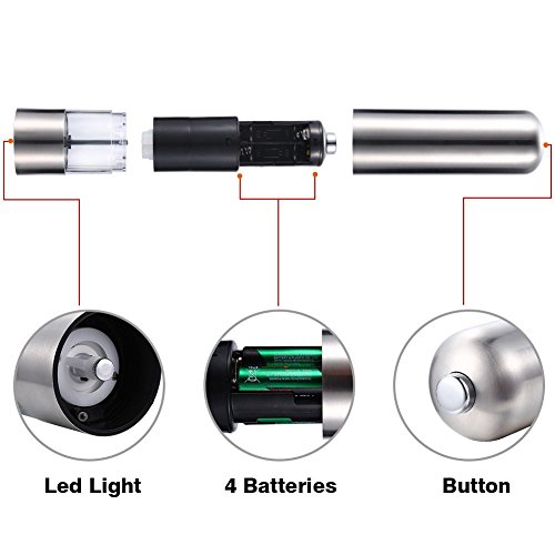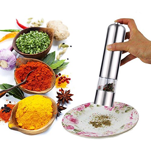 Lingstar Brushed Stainless Steel Electric Pepper Grinder Mill(Flat)1 PC