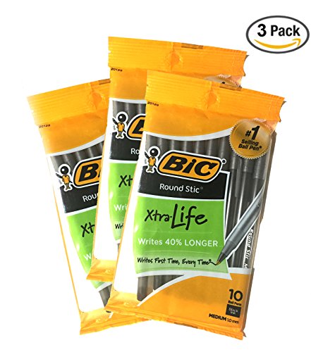 Round Stic Ballpoint Pen,Med. Point,10/PK,Black Ink [Set of 3]