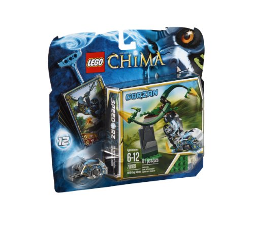 -. Feature : Features jungle gate and spinning fangs, gorilla Speeder, ripcord, power-up, 6 CHI and 5 game cards / Includes a CHI weapon and a standard weapon Hit the column to knock the CHI from the nest Battle for 6 CHI / Attach the power-up for improved stability or leave a slippery banana-skin obstacle for your opponents Pull the ripcord and unleash the Speeder / Gate with spinning fangs measures over 7 high, 7 wide and 2 deep / Collect the entire L.E.G.O" Chima Speedorz series to create combo games