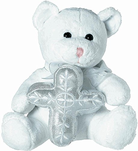 -. Feature : Soft Plush Religious Bear holding a Silver Stuffed Cross / Measures Approximately 6-inches H x 6-inches W / A thoughtful gift for a Baptism, First Communion, Confirmation or for anyone who needs a Spiritual Hug.