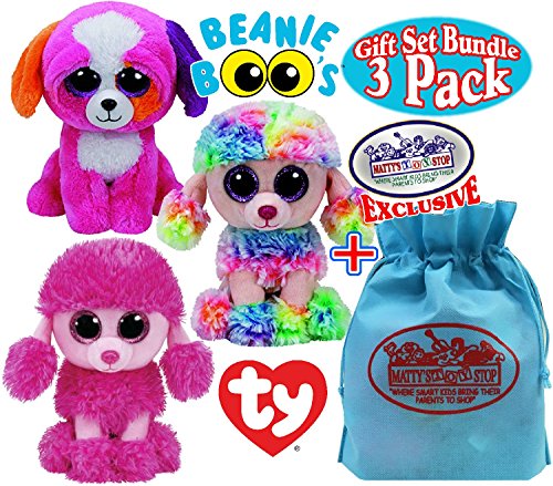 -. Feature : Gift Set Bundle Includes 3 Awesome Bright Beanie Boo Dogs! Rainbow, Patsy & Precious! / Rainbow (Multi-color Poodle) - They call me Poofie because of my hair It has style and flair and it's the coolest to wear! - Patsy (Pink Poodle) Play with me and fluff my hair I'll sit very quietly on a chair! - Precious (Multi-color Dog) - I am smart and happy and bright pink, The perfect pet for you, don't you think? / Official products from Ty's wildly popular Beanie Boos Collection, handmade of polyester fibers plastic pellets. Beanie Boos are approx. 6" Tall/Long and are made of the highest quality materials! / Makes a great gift & is perfect for schools, party favors, stocking stuffers, baskets, camps, special needs, collectibles and so much more! / For Ages 3 and up - Fun for the whole family! - Matty's Toy Stop exclusive storage bag included!