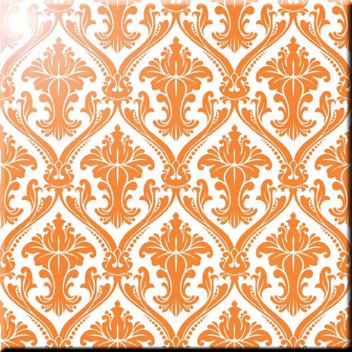Rikki Knight RK-12intilec-9226 12" X 12" Orange Damask Design Ceramic Art Tile