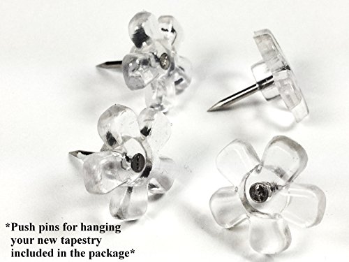• ? 4 FLAT HEAD, FLOWER SHAPED CLEAR HANGING PINS ? No other tapestry on Amazon includes pins ready for hanging. You can start enjoying your tapestry 5 minutes after you open it.